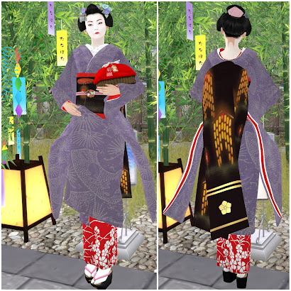 1st of August is always one of the most busy and important days in August for Hanafusa okiya members as this is the day of Hassaku. What is Hassaku and why is it considered that important? Well, it is similar to greeting rounds that take place in winter (Shin Aishatsu) but, of course, there are several differences. So, every year on this hot summer day, all okiya members from Miyagawacho Hanamachi dress up in their casual komon or iromuji and go on rounds, paying respects to teachers, establishments and sometimes long time patrons. Indeed, it takes time to make all visits and greet people that play important if not major part in the life of the okiya - kimono makers, local shop keepers, kanzashi makers, tea house owners, teachers, fan and prop makers etc. This is same, both for Rl and SL, as Hanafusa okiya tries to keep all the traditions, being as realistic as possible.